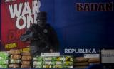 Petugas berjaga di dekat barang bukti narkotika di Jakarta, Selasa (19/10). BNN memusnahkan 465 kilogram sabu, 113 kilogram ganja dan 1 kilogram MDMB-4en-Pinaca hasil dari pengungkapan sepuluh kasus yang berbeda. Republika/Putra M. Akbar (FOTO : Republika/Putra M. Akbar)