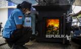 Petugas memusnahkan barang bukti narkotika di Jakarta, Selasa (19/10). BNN memusnahkan 465 kilogram sabu, 113 kilogram ganja dan 1 kilogram MDMB-4en-Pinaca hasil dari pengungkapan sepuluh kasus yang berbeda. (FOTO : Republika/Putra M. Akbar)