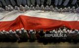 REPUBLIKA.CO.ID, JAKARTA -- Sejumlah santri melaksanakan apel sebelum pembentangan bendera Merah Putih di Pondok Pesantren Asshiddiqiyah, Kebon Jeruk, Jakarta, Jumat (22/10). Bendera Merah Putih sepanjang 200 meter tersebut dibentangkan mengelilingi lapangan Pondok Pesantren Asshiddiqiyah dalam rangka memeriahkan Hari Santri Nasional 2021 yang bertemakan Santri Siaga Jiwa dan Raga.