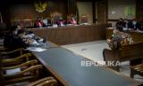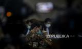 REPUBLIKA.CO.ID, JAKARTA -- Mantan Wakil Ketua DPR Azis Syamsuddin menyampaikan keterangan dalam sidang lanjutan kasus dugaan suap penanganan perkara yang diusut KPK dengan terdakwa mantan penyidik KPK AKP Stepanus Robin Pattuju dan pengacara Maskur Husain di Pengadilan Tipikor, Jakarta, Senin (25/10). Sidang tersebut beragendakan mendengarkan keterangan saksi.