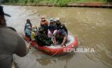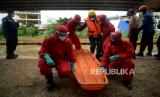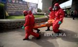 Simulasi penanganan korban banjir, terutama evakuasi warga yang terpapar Covid-19..