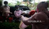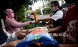 REPUBLIKA.CO.ID, JAKARTA -- Warga melakukan pengambilan bahan pangan murah di RPTRA Amir Hamzah, Jakarta, Jumat (19/11).