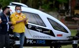Ketua Ikatan Motor Indonesia (IMI) Bambang Soesatyo (kanan) berbincang dengan Presiden Direktur Prestige Image Motocars Rudy Salim (kiri) saat  demo flight di kawasan Klungkung, Bali, Jumat (26/11/2021).Kendaraan udara otonom bertenaga listrik dengan kapasitas dua orang penumpang itu direncanakan akan dapat mengangkut penumpang di area perkotaan dengan memanfaatkan jaringan internet dan dikendalikan dari darat.  (FOTO : ANTARA/Fikri Yusuf)