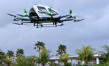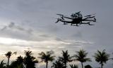 REPUBLIKA.CO.ID,DENPASAR -- Taksi terbang EHang 216 lepas landas saat menjalani demo flight di kawasan Klungkung, Bali, Jumat (26/11/2021).