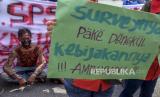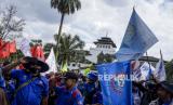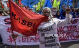 REPUBLIKA.CO.ID,BANDUNG -- Sejumlah buruh dari berbagai serikat buruh berunjuk rasa di depan Gedung Sate, Jalan Diponegoro, Kota Bandung, Senin (29/11).