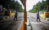 REPUBLIKA.CO.ID, BANDUNG -- Petugas melintas di gerbang keluar Jalan Tol Pasteur di Bandung, Senin (29/11/2021). Ditlantas Polda Jabar merekayasa lalu lintas dengan mengalihkan kendaraan yang akan menuju Pasteur ke gerbang tol lain akibat adanya unjuk rasa ribuan buruh di Kota Bandung.
