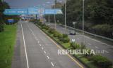 Suasana lengang jelang pintu keluar Jalan Tol Pasteur di Bandung, Senin (29/11/2021). Ditlantas Polda Jabar merekayasa lalu lintas dengan mengalihkan kendaraan yang akan menuju Pasteur ke gerbang tol lain akibat adanya unjuk rasa ribuan buruh di Kota Bandung. (FOTO : Antara/Raisan Al Farisi)