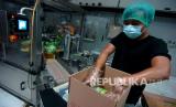 Pekerja melakukan pengemasan minyak goreng di kantor distributor minyak goreng SGT, Desa Dampyak, Kabupaten Tegal, Jawa Tengah, Rabu (1/12/2021). Menurut pihak distributor tersebut pihaknya siap beralih penjualan dari minyak goreng curah menjadi minyak goreng kemasan, terkait adanya larangan perdagangan minyak goreng curah per 1 Januari 2022 oleh Kementerian Perdagangan. (FOTO : Antara/Oky Lukmansyah)