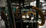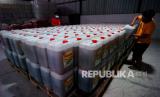 REPUBLIKA.CO.ID, TEGAL -- Pekerja mengawasi proses pengemasan minyak goreng di kantor distributor minyak goreng SGT, Desa Dampyak, Kabupaten Tegal, Jawa Tengah, Rabu (1/12/2021).
