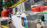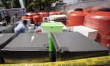 Personel Polda Sumatera Selatan memeriksa barang bukti tindak kejahatan penampungan benih lobster saat rilis kasus di Palembang, Sumatera Selatan, Kamis (2/12/2021). Polda Sumatera Selatan mengungkap lokasi penampungan benih lobster di Desa Mulia Sari, Tanjung Lago, Banyuasin, Sumatera Selatan serta menyita 153.440 ekor benih lobster senilai Rp24,42 miliar dan menahan 13 orang tersangka. (FOTO : Antara/Nova Wahyudi)