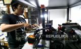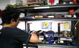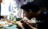 Teknisi merakit miniatur kereta api di Meddarie Works Id, Yogyakarta, Selasa (14/12). Pembuatan miniatur kereta api klasik ini menggunakan printer 3D. Untuk harga jual mulai Rp 150 ribu hingga Rp 20 juta tergantung ukuran dan detail kereta. Untuk pengerjaan miniatur kereta biasanya memakan waktu seminggu hingga tiga bulan. (FOTO : Wihdan Hidayat / Republika)
