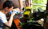 Yoga melihat pembuatan parts miniatur kereta api di Meddarie Works Id, Yogyakarta, Selasa (14/12). Pembuatan miniatur kereta api klasik ini menggunakan printer 3D. Untuk harga jual mulai Rp 150 ribu hingga Rp 20 juta tergantung ukuran dan detail kereta. Untuk pengerjaan miniatur kereta biasanya memakan waktu seminggu hingga tiga bulan. (FOTO : Wihdan Hidayat / Republika)
