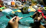 REPUBLIKA.CO.ID,YOGYAKARTA -- Teknisi merakit miniatur kereta api di Meddarie Works Id, Yogyakarta, Selasa (14/12).