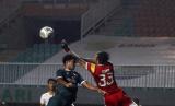 Kiper Martapura Dewa United Rifky Mokodompit (kanan) menahan sundulan pesepak bola PSMS Medan Agung Supriyanto (kiri) dalam lanjutan Liga 2 babak 8 besar di Stadion Pakansari, Kabupaten Bogor, Jawa Barat, Kamis (23/12/2021). Martapura Dewa United menang dengan skor 1-0, dan berhak melaju kebabak semi final. (FOTO : ANTARA/Yulius Satria Wijaya)