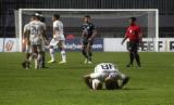 Pesepak bola Martapura Dewa United Achmad Faris melakukan sujud syukur setelah timnya mengalahkan PSMS Medan dalam lanjutan Liga 2 babak 8 besar di Stadion Pakansari, Kabupaten Bogor, Jawa Barat, Kamis (23/12/2021). Martapura Dewa United menang dengan skor 1-0, dan berhak melaju kebabak semi final. (FOTO : ANTARA/Yulius Satria Wijaya)
