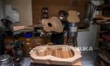 Pekerja menyelesaikan pembuatan gitar di rumah produksi Secco Guitar, Jalan Tanjung, Bandung Wetan, Kota Bandung, Rabu (5/1). Kementerian Koperasi (Kemenkop) dan UKM menyatakan, memasuki tahun 2022, koperasi dan UMKM siap untuk memasuki fase pemulihan transformatif (transformative recovery). Salah satunya dengan cara pemberian hibah Bantuan Presiden Produktif Usaha Mikro (BPUM) kepada 12,8 juta pelaku usaha mikro sebesar Rp15,36 triliun dan pemberian tambahan subsidi bunga kredit usaha rakyat (KUR) sebesar tiga persen. (FOTO : REPUBLIKA/ABDAN SYAKURA)