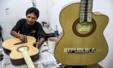Pekerja menyelesaikan pembuatan gitar di rumah produksi Secco Guitar, Jalan Tanjung, Bandung Wetan, Kota Bandung, Rabu (5/1). Kementerian Koperasi (Kemenkop) dan UKM menyatakan, memasuki tahun 2022, koperasi dan UMKM siap untuk memasuki fase pemulihan transformatif (transformative recovery). Salah satunya dengan cara pemberian hibah Bantuan Presiden Produktif Usaha Mikro (BPUM) kepada 12,8 juta pelaku usaha mikro sebesar Rp15,36 triliun dan pemberian tambahan subsidi bunga kredit usaha rakyat (KUR) sebesar tiga persen. Foto: Republika/Abdan Syakura (FOTO : REPUBLIKA/ABDAN SYAKURA)
