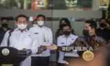 REPUBLIKA.CO.ID,JAKARTA -- Menteri BUMN Erick Thohir memberikan keterangan pers di Gedung Kartika Adhyaksa Kejaksaan Agung Republik Indonesia, Jakarta, Selsa (11/1).