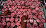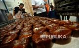REPUBLIKA.CO.ID, TEGAL -- Pekerja menata dodol keranjang di rumah industri dodol keranjang, Tegal, Jawa Tengah, Sabtu (22/1/2022). Menurut produsen dua pekan terakhir permintaan dodol keranjang khas Imlek yang dijual ke sejumlah daerah diantaranya Solo, Bandung dan Semarang dengan harga Rp21 ribu - Rp25 ribu per kilogram tersebut meningkat hingga 100 persen.