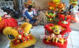 REPUBLIKA.CO.ID, Perajin menyelesaikan pembuatan kepala barongsai di kawasan Pondok Jati Sidoarjo, Jawa Timur, Rabu (26/1/2022). Barongsai tersebut dijual dengan harga Rp2,5 juta hingga Rp5,5 juta tergantung bentuk dan tingkat kesulitan pembuatan.