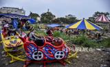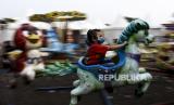 Seorang anak mengenakan masker bermain salah satu wahana permainan di kawasan Asia Afrika, Kota Bandung, Sabtu (29/1/2022). Berdasarkan data dari Global Initiative On Sharing All Influenza Data (GISAID) hingga Jumat (28/1/2022), kasus Covid-19 varian Omicron (B.1.1.529) di Indonesia telah mencapai 1.875 kasus. Dengan jumlah tersebut, Indonesia berada di salah satu urutan tertinggi kasus Omicron di Asia Tenggara. Foto: Republika/Abdan Syakura (FOTO : REPUBLIKA/ABDAN SYAKURA)