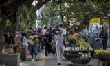 Warga beraktivitas di kawasan Asia Afrika, Kota Bandung, Sabtu (29/1/2022). Berdasarkan data dari Global Initiative On Sharing All Influenza Data (GISAID) hingga Jumat (28/1/2022), kasus Covid-19 varian Omicron (B.1.1.529) di Indonesia telah mencapai 1.875 kasus. Dengan jumlah tersebut, Indonesia berada di salah satu urutan tertinggi kasus Omicron di Asia Tenggara. (FOTO : REPUBLIKA/ABDAN SYAKURA)