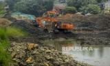 REPUBLIKA.CO.ID, JAKARTA -- Alat berat saat mengeruk lahan yang akan dijadikan Waduk Brigif di kawasan Jagakarsa, Jakarta, Kamis (3/2/2022). Pemerintah Provinsi DKI Jakarta membangun Waduk Brigif untuk mengendalikan banjir pada aliran Kali Krukut yang ditargerkan rampung pada Desember 2022.