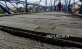 Kondisi jembatan mulai usang dengan kayu yang sudah lapuk sehingga membahayakan warga.