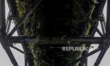 Kondisi besi Jembatan Ledeng yang sudah ditumbuhi tanaman liar di Kota Bogor, Jawa Barat, Kamis (10/2/2022). Jembatan peninggalan zaman Belanda tersebut merupakan akses warga yang menghubungi Kampung Sindangsari dan Kampung Mekarsari yang dipisahkan oleh Sungai Cisadane. Kondisi jembatan yang sudah usang dengan kayu yang sudah lapuk, besi yang sudah mulai berkarat dan ditumbuhi tanaman liar tersebut dapat membahayakan pengguna jembatan yang melintas. Republika/Putra M. Akbar (FOTO : Republika/Putra M. Akbar)