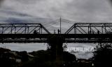 Kondisi besi Jembatan Ledeng yang sudah berkarat di Kota Bogor, Jawa Barat, Kamis (10/2/2022). Jembatan peninggalan zaman Belanda tersebut merupakan akses warga yang menghubungi Kampung Sindangsari dan Kampung Mekarsari yang dipisahkan oleh Sungai Cisadane. Kondisi jembatan yang sudah usang dengan kayu yang sudah lapuk, besi yang sudah mulai berkarat dan ditumbuhi tanaman liar tersebut dapat membahayakan pengguna jembatan yang melintas. Republika/Putra M. Akbar (FOTO : Republika/Putra M. Akbar)