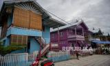 Warga penyintas bencana beraktivitas di hunian tetap (Huntap) mandiri yang ditempatinya di Kelurahan Mamboro, Palu, Sulawesi Tengah, Ahad (13/2/2022). Huntap Mandiri dengan konsep rumah panggung sebanyak 38 unit yang dikerjakan secara gotong royong oleh penyintas sendiri dan difasilitasi oleh Yayasan Arkom Indonesia itu mendapat penghargaan sebagai World Habitat Awards Bronze Winner 2021 oleh World Habitat bekerja sama dengan United Nations-Habitat. (FOTO : ANTARA/Basri Marzuki)
