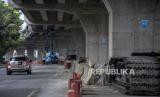 Kendaraan melintas di samping area pembangunan Jembatan Layang (flyover) Kopo di Jalan Soekarno Hatta, Kota Bandung, Jumat (25/2/2022). Pemerintah Kota Bandung menyatakan pembangunan Flyover Kopo tersebut telah mencapai 80 persen dan ditargetkan rampung pada akhir April 2022 mendatang, serta diharapkan mampu mengurai kemacetan yang kerap terjadi di kawasan tersebut. Foto: Republika/Abdan Syakura (FOTO : REPUBLIKA/ABDAN SYAKURA)