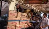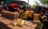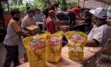 REPUBLIKA.CO.ID,BANDUNG -- Petugas melakukan bongkar muat minyak goreng untuk didistribusikan saat operasi pasar minyak goreng di Kantor Kecamatan Cinambo, Jalan Cinambo, Kota Bandung, Rabu (9/3/2022).