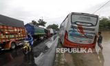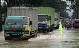 Banjir menyebabkan kemacetan kendaraan dari arah Jogja menuju Bandung dan sebaliknya..