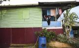 Warga menjemur pakaian di teras rumahnya yaitu pemukiman yang berada dalam Kawasan Inti Pusat Pemerintahan Ibu Kota Negara (IKN) Nusantara di Kecamatan Sepaku, Penajam Paser Utara, Kalimantan Timur, Selasa (15/3/2022). Kawasan Inti Pusat Pemerintahan IKN Nusantara seluas 6.671 hektare itu rencananya akan terbagi menjadi tiga klaster, yaitu klaster kawasan inti pemerintahan, klaster pendidikan, dan klaster kesehatan. (FOTO : ANTARA/Hafidz Mubarak A)