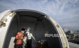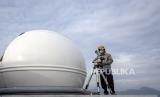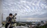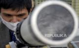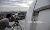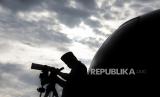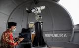 Petugas melakukan pemantauan hilal (rukyatul hilal) menggunakan teleskop di Observatorium Albiruni Unisba, Jalan Tamansari, Kota Bandung, Jumat (1/4/2022). Hasil pemantauan hilal 1 Ramadhan 1443 H di kawasan tersebut tidak tampak karena terhalang cuaca yang berawan. Foto: Republika/Abdan Syakura (FOTO : REPUBLIKA/ABDAN SYAKURA)