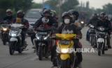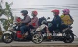 Pemudik yang menggunakan sepeda motor melintasi jalur pantura daerah Pamanukan, Subang, Jawa Barat, Kamis (29/4/2022).Pada H-3 Lebaran, jalur Pantura dipadati kendaraan pemudik khususnya kendaraan roda dua yang menuju wilayah Cirebon dan Jawa Tengah. (FOTO : Prayogi/Republika.)