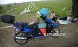 Pemudik sepeda motor berisitirahat ketika melintasi jalur pantura daerah Pamanukan, Subang, Jawa Barat, Kamis (29/4/2022).Pada H-3 Lebaran, jalur Pantura dipadati kendaraan pemudik khususnya kendaraan roda dua yang menuju wilayah Cirebon dan Jawa Tengah.Prayogi/Republika. (FOTO : Prayogi/Republika.)