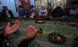 Sejumlah warga berdoa bersama pada tradisi Apem Pudunan Leluhur di lereng Gunung Merbabu, Sidorejo, Genting, Cepogo, Boyolali, Jawa Tengah, Ahad (1/5/2022). Selain mendoakan para leluhur yang telah meninggal dunia, tradisi pudunan (turun) itu juga sebagai rasa syukur masyarakat atas berakhirnya bulan suci Ramadhan dan menyambut Hari Raya Idul Fitri 1443 H. (FOTO : ANTARA/Aloysius Jarot Nugroho)