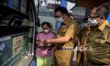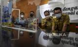 Gubernur Jawa Barat Ridwan Kamil (kanan) berbincang dengan petugas saat kunjungan kerja di Kantor Samsat Pajajaran, Jalan Pajajaran, Kota Bandung, Senin (9/5/2022). Kunjungan tersebut dalam rangka untuk memantau serta memastikan kinerja pelayanan publik berjalan dengan baik pada hari pertama kerja pasca cuti bersama Lebaran 2022. Foto: Republika/Abdan Syakura (FOTO : REPUBLIKA/ABDAN SYAKURA)
