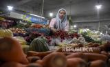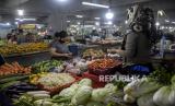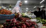 REPUBLIKA.CO.ID,BANDUNG --  Pedagang melayani pembeli di kiosnya di Pasar Kosambi, Kota Bandung, Rabu (11/5/2022).