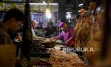 Pembeli memilih daging ayam di salah satu kios di Pasar Kosambi, Kota Bandung, Rabu (11/5/2022). Berdasarkan keterangan pedagang, sepekan pasca Lebaran harga bahan pokok di pasar tersebut stabil diantaranya harga daging sapi tetap di Rp150 ribu, harga daging ayam turun dari Rp45 ribu menjadi Rp42 ribu per kilogram, telur ayam dari Rp30 ribu menjadi Rp28 ribu per kilogram, harga cabai rawit dari Rp100 ribu menjadi Rp50 ribu dan harga cabai merah keriting dari Rp60 ribu menjadi Rp40 ribu. Foto: Republika/Abdan Syakura (FOTO : REPUBLIKA/ABDAN SYAKURA)