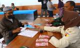 REPUBLIKA.CO.ID, MALANG -- Petugas melayani penyaluran Bantuan Tunai Pedagang Kaki Lima, Warung dan Nelayan (BTPKLWN) kepada penerima manfaat di Markas Komando Distrik Militer (Makodim) 0833 Malang, Jawa Timur, Rabu (18/5/2022). Bantuan dari pemerintah pusat senilai Rp2,1 milliar tersebut diberikan kepada tujuh ribu orang penerima manfaat di Kota Malang dengan nominal masing-masing penerima sebesar Rp300 ribu.