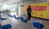 Tempat tes rapid antigen sepi di Stasiun Yogyakarta, Kamis (19/5/2022). Pelanggan kereta api jarak jauh yang telah vaksinasi Covid-19 dosis kedua atau boster tidak diwajibkan menunjukan hasil negatif tes RT PCR atau rapid tes Antigen pada saat boarding. Kebijakan ini berlaku mulai keberangkatan 18 Mei 2022 kemarin. Namun, bagi penumpang yang baru vaksin pertama atau belum vaksin dengan alasan medis wajib menunjukkan hasil negatif Rapid Tes Antigen 1x24 jam atau tes RT-PCR 3x24 jam. (FOTO : Wihdan Hidayat / Republika)