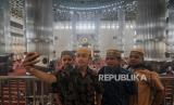 Umat Muslim berswafoto usai melaksanakan Shalat Jumat di Masjid Istiqlal, Jakarta, Jumat (20/5/2022). Majelis Ulama Indonesia (MUI) membolehkan pelaksanaan shalat berjamaah untuk tidak memakai masker bagi jamaah yang dalam kondisi sehat seiring pelonggaran protokol kesehatan yang kembali ditetapkan pemerintah. Republika/Putra M. Akbar (FOTO : Republika/Putra M. Akbar)