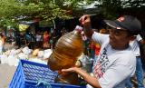 Pedagang mengangkat minyak goreng curah yang dibelinya saat operasi pasar di kawasan Pasar Dungus, Kabupaten Madiun, Jawa Timur, Jumat (20/5/2022). Dalam operasi pasar tersebut, Pemkab Madiun menyediakan 6.000 kilogram minyak goreng curah yang dijual kepada pedagang dan warga dengan harga Rp14.500 per kilogram untuk memenuhi kebutuhan masyarakat dan mengatasi kelangkaan minyak goreng. (FOTO : ANTARA/Siswowidodo)