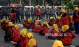 Massa yang tergabung Gerakan Buruh Bersama Rakyat (Gebrak) berunjuk rasa di kawasan  Patung Kuda, Jakarta, Sabtu (21/5/2022). Aksi yang bertepatan dengan peringatan 24 tahun reformasi tersebut membawa 14 tuntutan, yaitu pencabutan Omnibus Law Cipta Kerja, penolakan revisi UU PPP, diturunkannya harga minyak goreng dan tolak penundaan Pemilu.Prayogi/Republika.  (FOTO : Prayogi/Republika.)