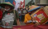 Massa yang tergabung Gerakan Buruh Bersama Rakyat (Gebrak) berunjuk rasa di kawasan  Patung Kuda, Jakarta, Sabtu (21/5/2022). Aksi yang bertepatan dengan peringatan 24 tahun reformasi tersebut membawa 14 tuntutan, yaitu pencabutan Omnibus Law Cipta Kerja, penolakan revisi UU PPP, diturunkannya harga minyak goreng dan tolak penundaan Pemilu. (FOTO : Prayogi/Republika)