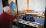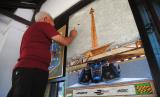 Seniman Bambang Sriyanto menyelesaikan pembuatan lukisan dari bahan limbah cangkang telur dengan tema Formula E di Perumnas Bantarjati, Kota Bogor, Jawa Barat, Senin (23/5/2022). Lukisan yang memanfaatkan daur ulang limbah cangkang telur tersebut diselesaikan dalam waktu 1,5 bulan sebagai bentuk apresiasi dan dukungan dalam menyambut penyelenggaraan Formula E di Jakarta International E-Prix Circuit (JIEC), Ancol, Jakarta Utara. (FOTO : ANTARA/Arif Firmansyah)