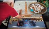 REPUBLIKA.CO.ID,JAKARTA -- Seniman Bambang Sriyanto menyelesaikan pembuatan lukisan dari bahan limbah cangkang telur dengan tema Formula E di Perumnas Bantarjati, Kota Bogor, Jawa Barat, Senin (23/5/2022).